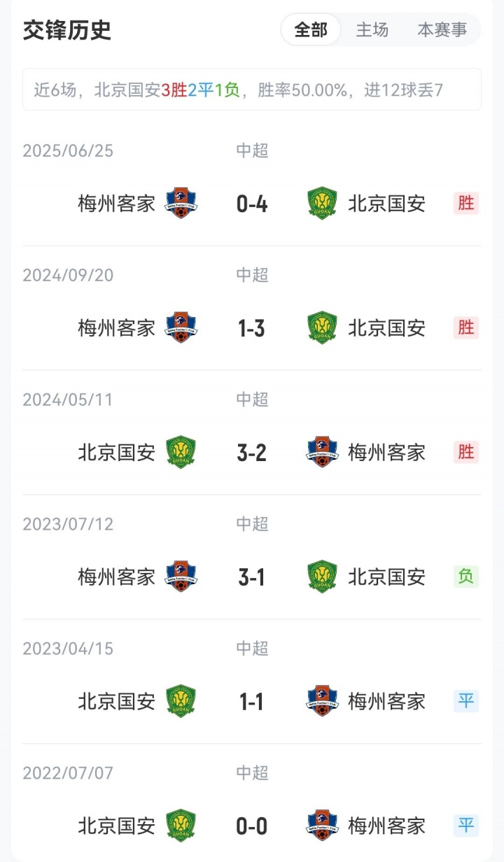 中超29轮过后,北京国安16胜6平7负积54分排在第4;梅州客家则是5胜6平18负积21分排在第15。本场比赛梅州客家需要取胜才有可能保级。