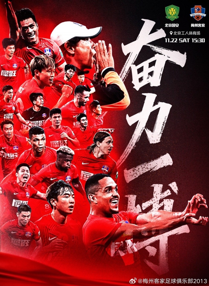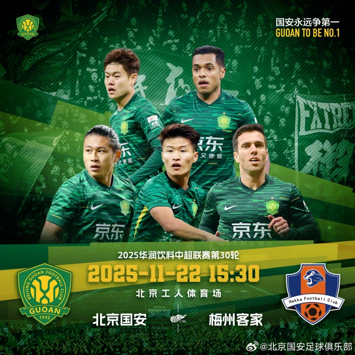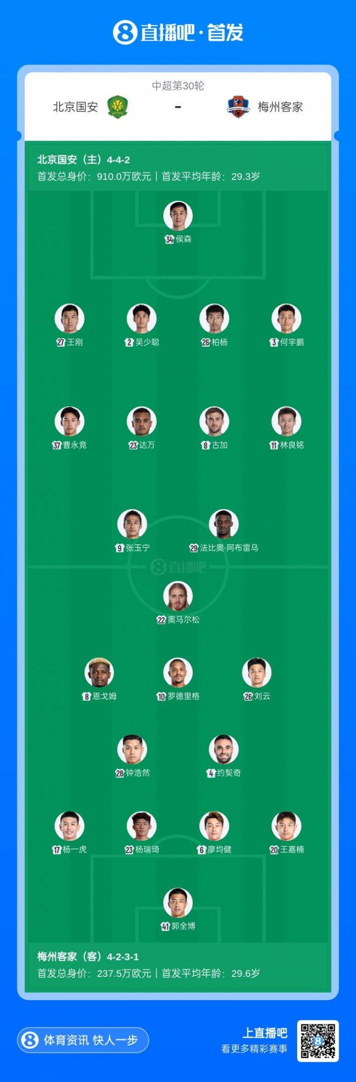 11月22日讯 11月22日15:30,中超第30轮,北京国安主场对阵梅州客家,赛前双方首发公布。