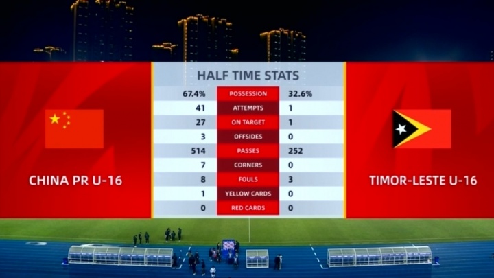 U16中国14-0东帝汶U16全场数据: